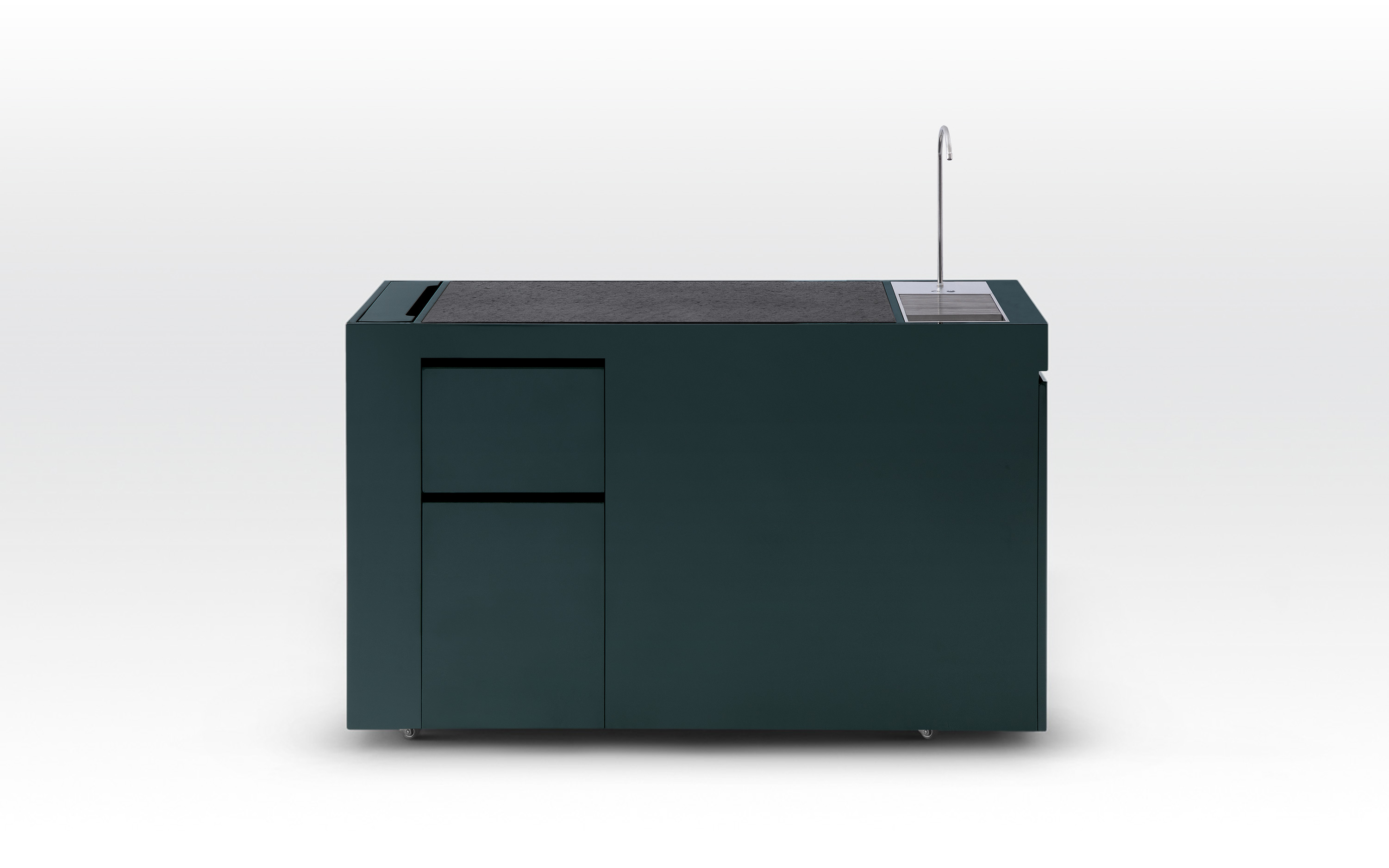 一般の事務テーブルの側におけば、必要に応じて、茶を作ったり、道具を洗ったりもできる。
