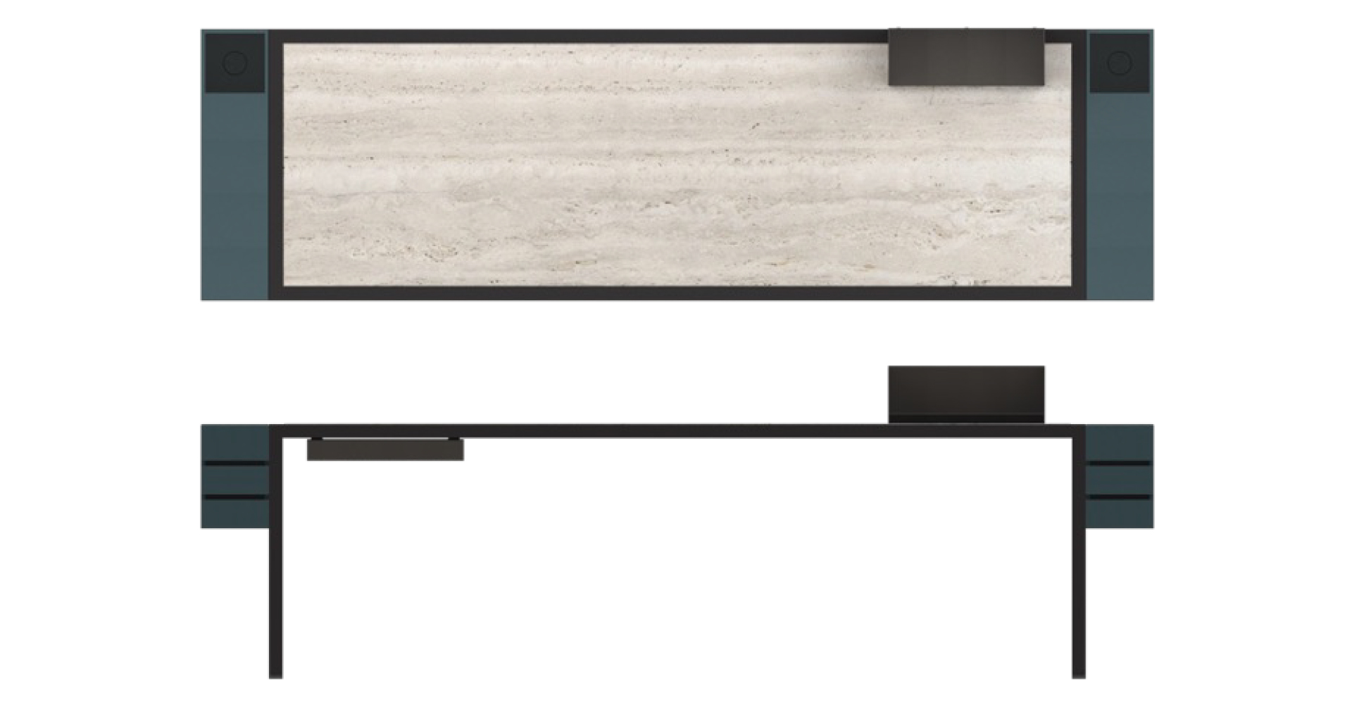 サイドアクセサリには照明が設置されて下方が明るくなってテーブル全体が浮かび上がる。