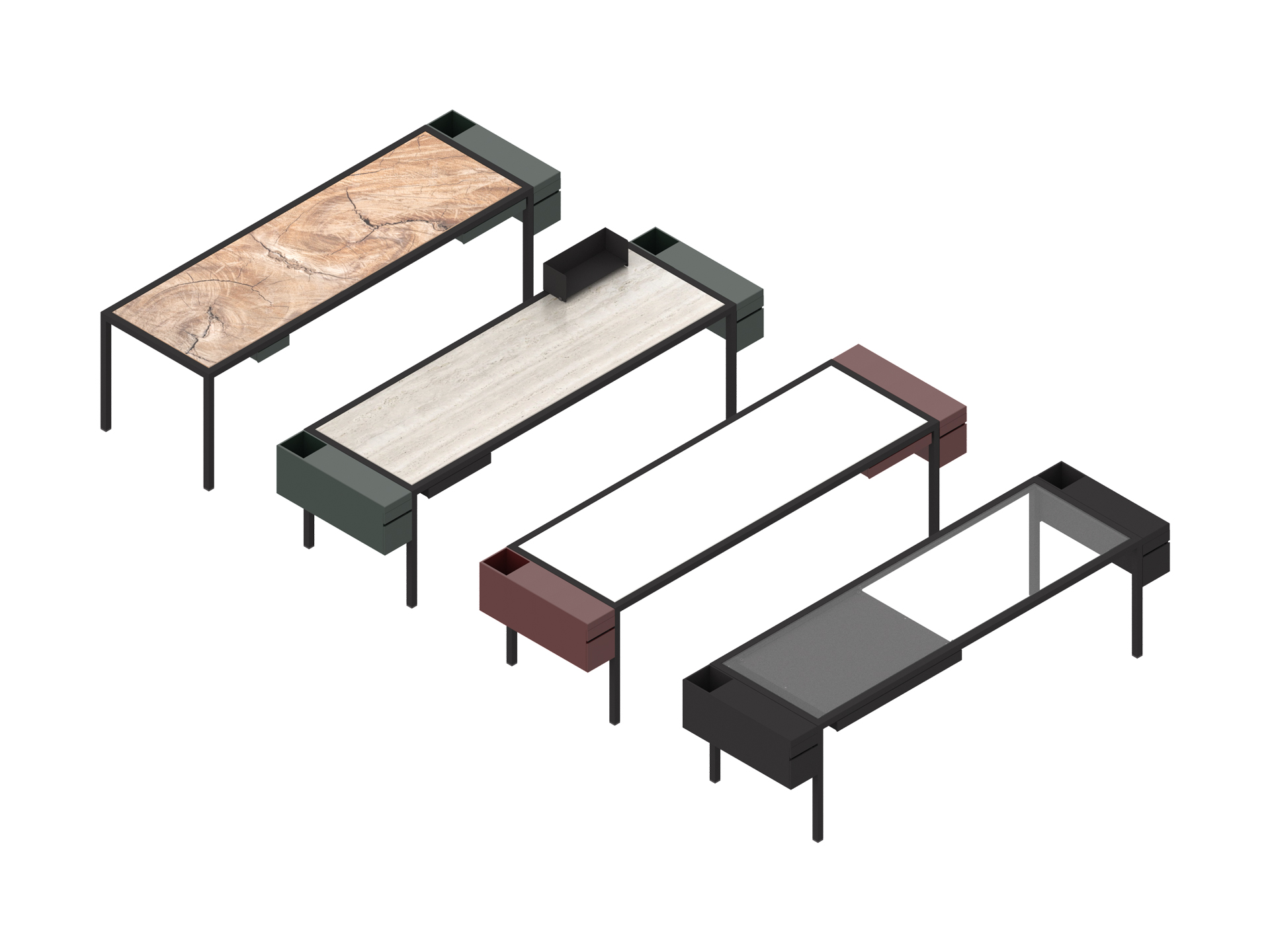 それらを複合する多用途なテーブルにもなる。