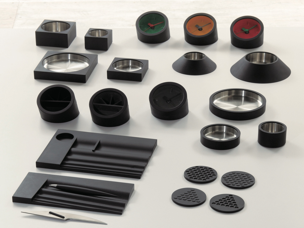 彼がまだ若い時代にデザインし一世を風靡したGOMシリーズはNew York MoMAにも保存されているものだが、その後、伝統工芸の職人たちと知り合うことで生まれた鉄瓶や茶釜など、漆器の複数の商品、プラチナのジュエリー、など多様である。