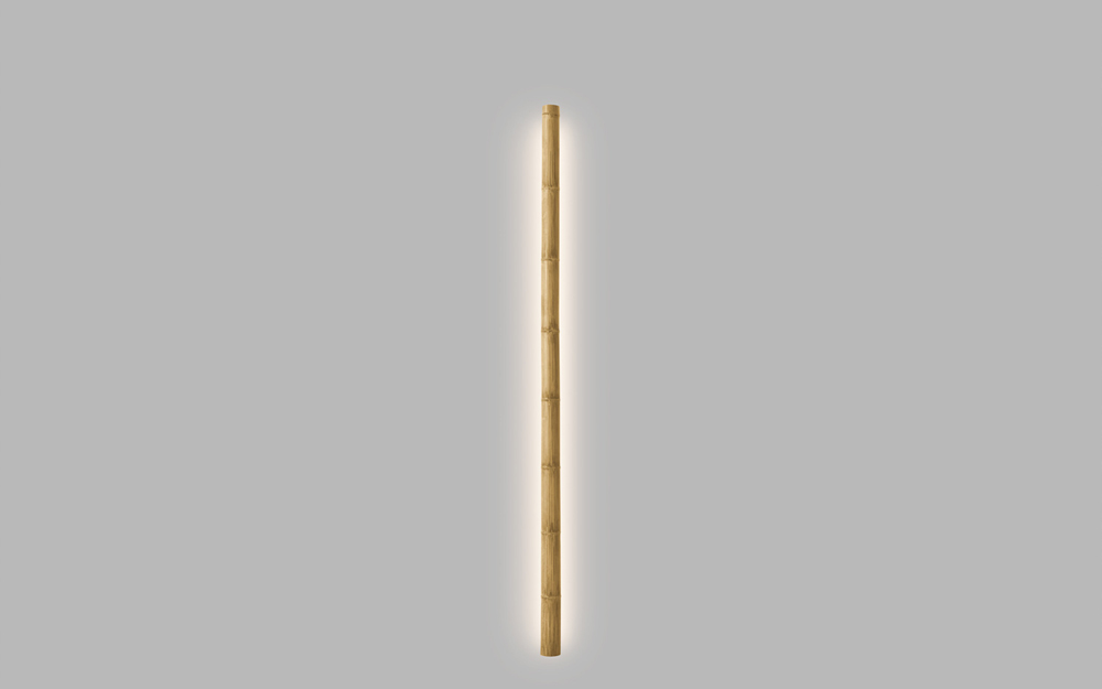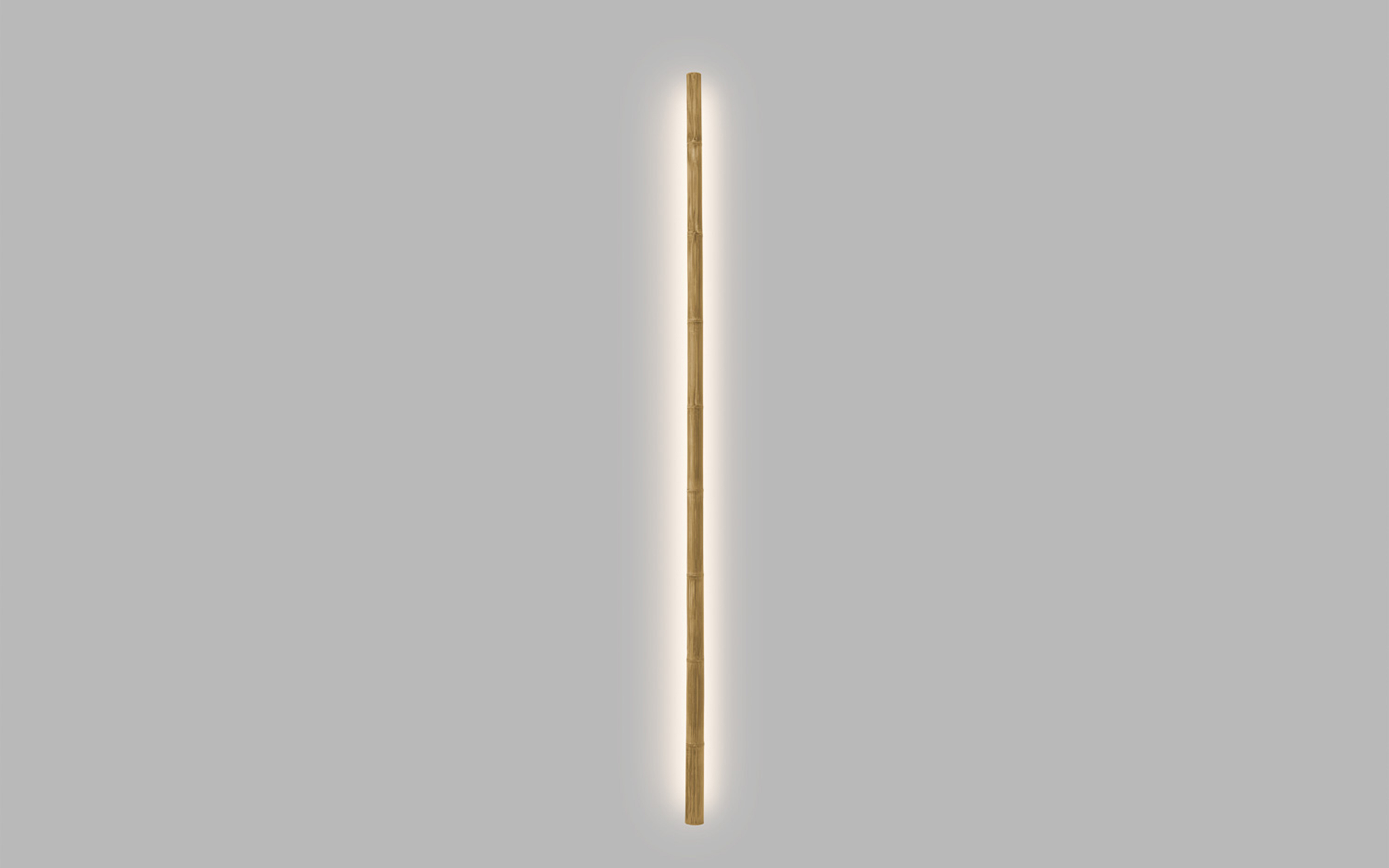 竹によるシャドーポールは壁に取り付けると壁が明るくなり竹が影になって浮かび上がる。