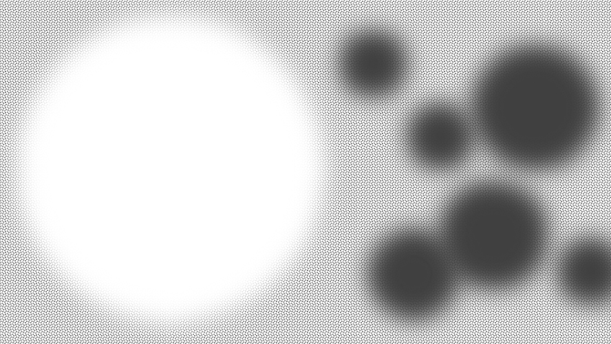 物の群れの世界観はもう一つの興味深いものを残してくれる。それが「地」であり「余白」であり「間」である。 これらは全て混沌の意味を初めから持っていて、姿を変えているに過ぎない。豊穣な美の領域である。